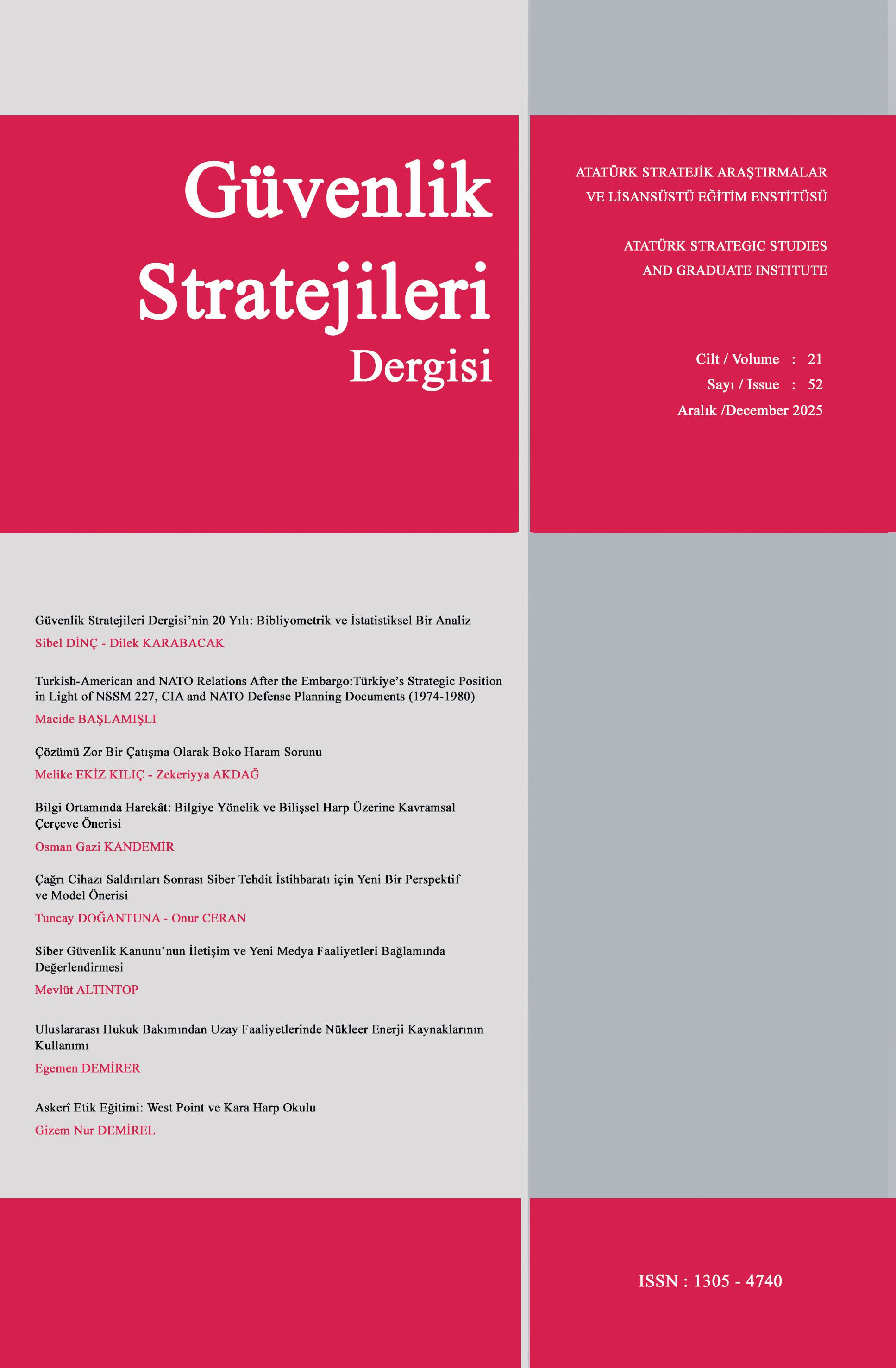 Güvenlik Stratejileri Dergisi was first published open-access by the Strategic Research Institute (SRI) of Turkish War Colleges in 2005 and has continued its publication life uninterrupted since then. The Journal's publishing rights have been transferred to the Atatürk Strategic Studies and Graduate Institute (ATASAREN) established under the Turkish National Defence University in 2016.